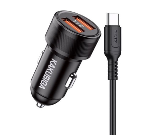 Caricabatterie da auto ricarica rapida 2xUSB 5V 2.4A con cavo type C