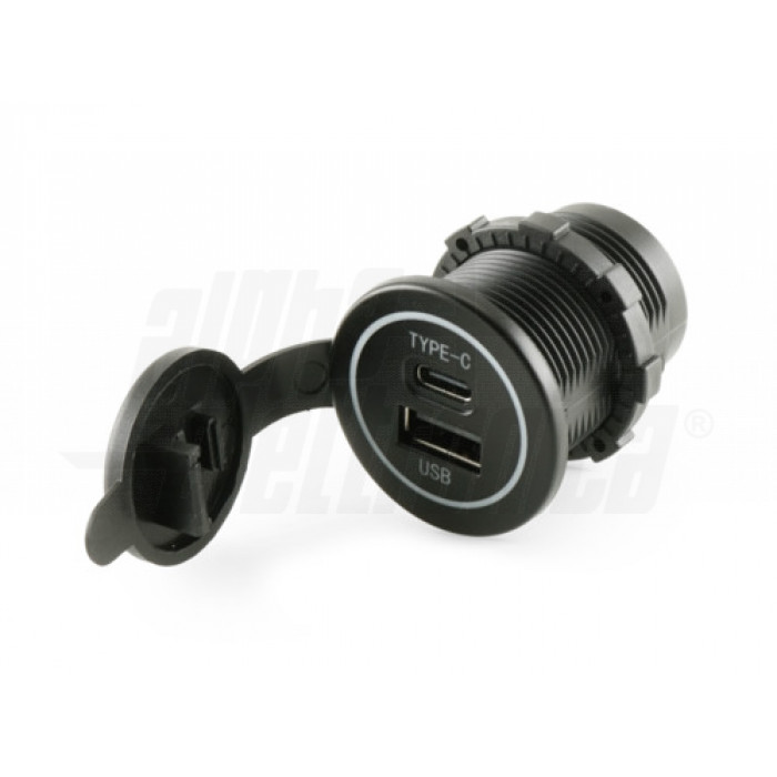 Caricatore con due uscite, USB tipo "A" e USB tipo "C" 5Vdc 3A Max. - Ingresso 12-28V quantity