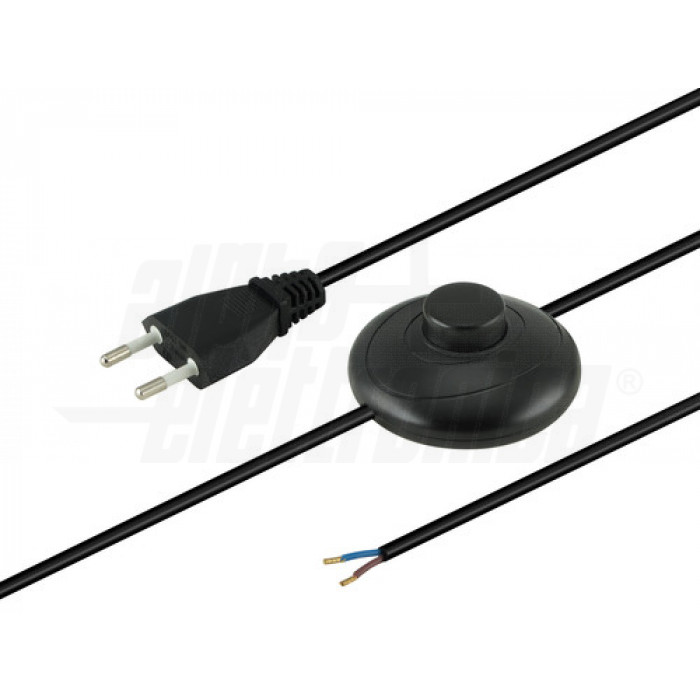 Cavo rete 2×0,75 con spina 10A + interruttore a pedale e fili spellati, cavo 3 mt Nero
