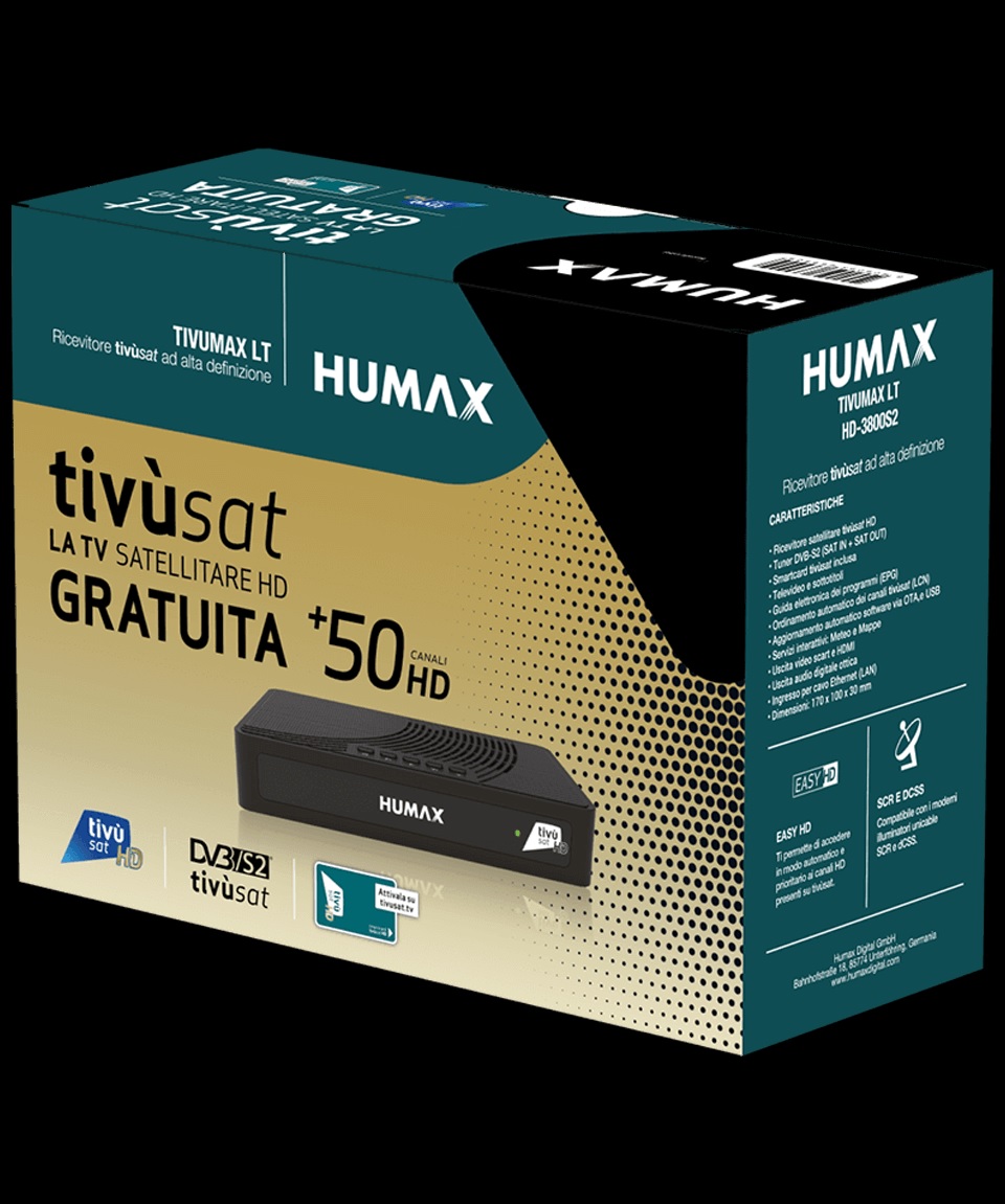 La funzione Easy HD permette di accedere in modo automatico e prioritario ai canali HD presenti su tivùsat. La guida elettronica ai programmi (EPG) di tivùsat visualizza tutte le informazioni dei programmi TV dei prossimi giorni sullo schermo del tuo TV. Interessante la compatibilità con impianti IF-IF grazie alla funzione blind-scan, caratteristica tecnica che rende Tivumax LT versatile e all’avanguardia in qualsiasi tipo di impianto.