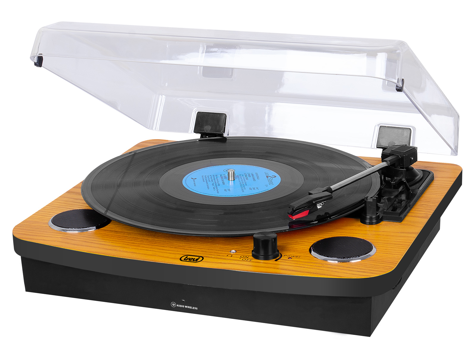 Trevi TT 1022 BT è dotato di 2 altoparlanti stereo incorporati da 3W ciascuno e di un’uscita audio RCA per collegare delle casse audio e aumentare così il volume totale d’ascolto. L’alimentazione del Giradischi Stereo Wireless Trevi TT 1022 BT è a corrente con alimentatore 230V~50Hz in dotazione.