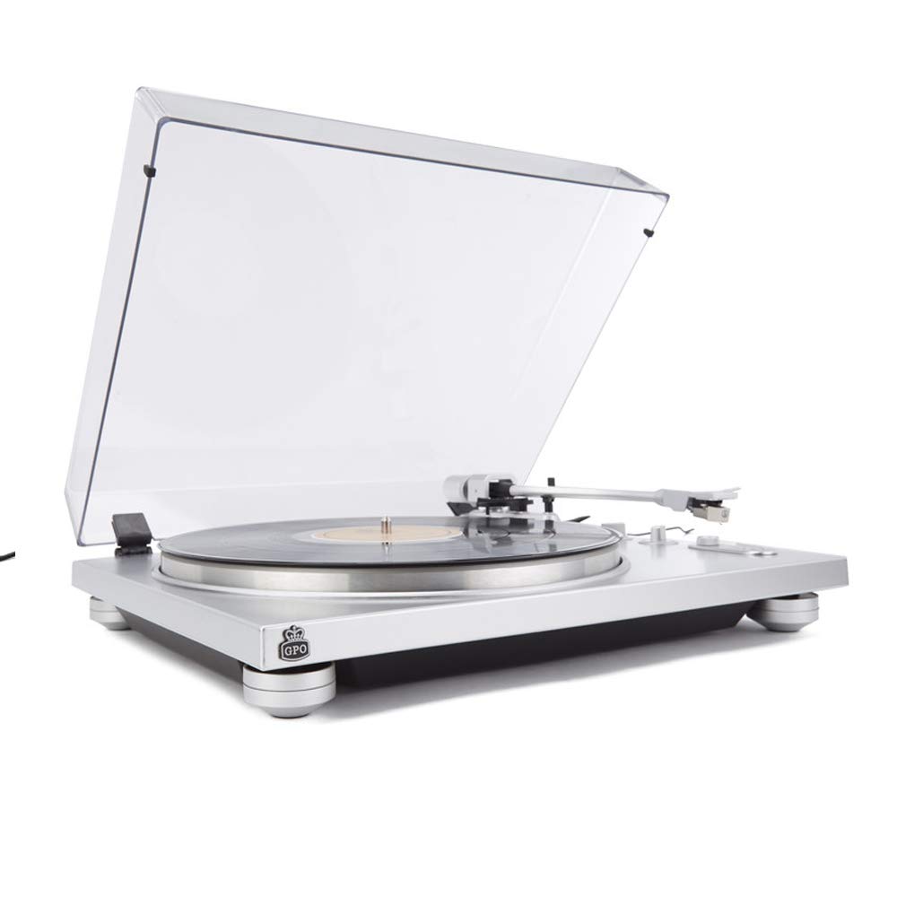 Il giradischi PR100 della marca GPO, dal designe sobrio ed elegante, è dotato di puntina Audio-Technica per una resa del suono davvero eccezionale.