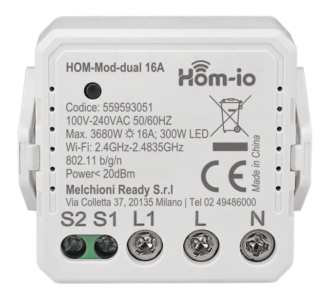 Modulo switch WiFi Hom-io per il controllo di illuminazione e dispositivi.