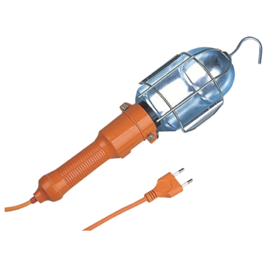 Lampada portatile con protezione metallica e interruttore, destinata ad un impiego in ambienti domestici e similari. Potenza max 60W. Portalampada E27. Lampadina non in dotazione.