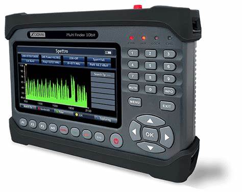 Misuratore portatile combinato di segnale satellitare DVB-S e DVB-S2 incluso dCSS e SCR, terrestre DVB-T e DVB-T2 incluso h.265 HVEC 10bit, via cavo DVB-C e fibra ottica con misuratore di potenza incluso.