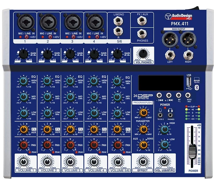 MIXER AudioDesignePRO 4+1 CH con BT Toslink ed effetti audio PMX.411TK