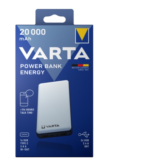 I VARTA Energy Power Banks sono disponibili in 4 diverse capacità che vanno da 5.000 mAh fino a 20.000 mAh per adattarsi a qualsiasi esigenza energetica individuale. Carica 3 dispositivi simultaneamente con le porte USB Tipo C e USB A incluse per non rimanere mai più a corto di energia. La tecnologia di sicurezza avanzata e il design sottile di VARTA rendono i VARTA Energy Power Banks il compagno perfetto per la flessibilità e l’indipendenza in movimento.