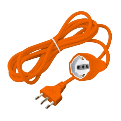 Prolunga elettrica da lavoro, lunghezza 5 metri con presa 10/16A/SCHUKO e spina 16A. Con alveoli schermati e corpo in materiale termoplastico. Tipo cavo 3x1mm² H05VV-F. Carico max 1.500W, colore: arancione