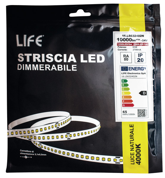 Striscia 240LED/m, 2835 IP20, 24V 13W/m, L.NATURALE 4000K±5%, 2000lm/m