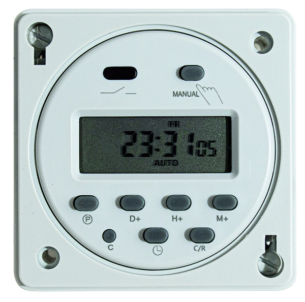 Ideale per l’utilizzo di dispositivi operanti a 12V/24V/220V. Applicazioni principali: giardino / camping / camper / nautica / caccia / pesca. Semplice da programmare, con visualizzazione display 24h. Consente di programmare l’utilizzo di qualunque dispositivo con regolazioni settimanali, giornaliere (a qualsiasi orario). 16 impostazioni giornaliere di accensione/spegnimento e 112 settimanali. Batteria tampone interna Ni-Mh.